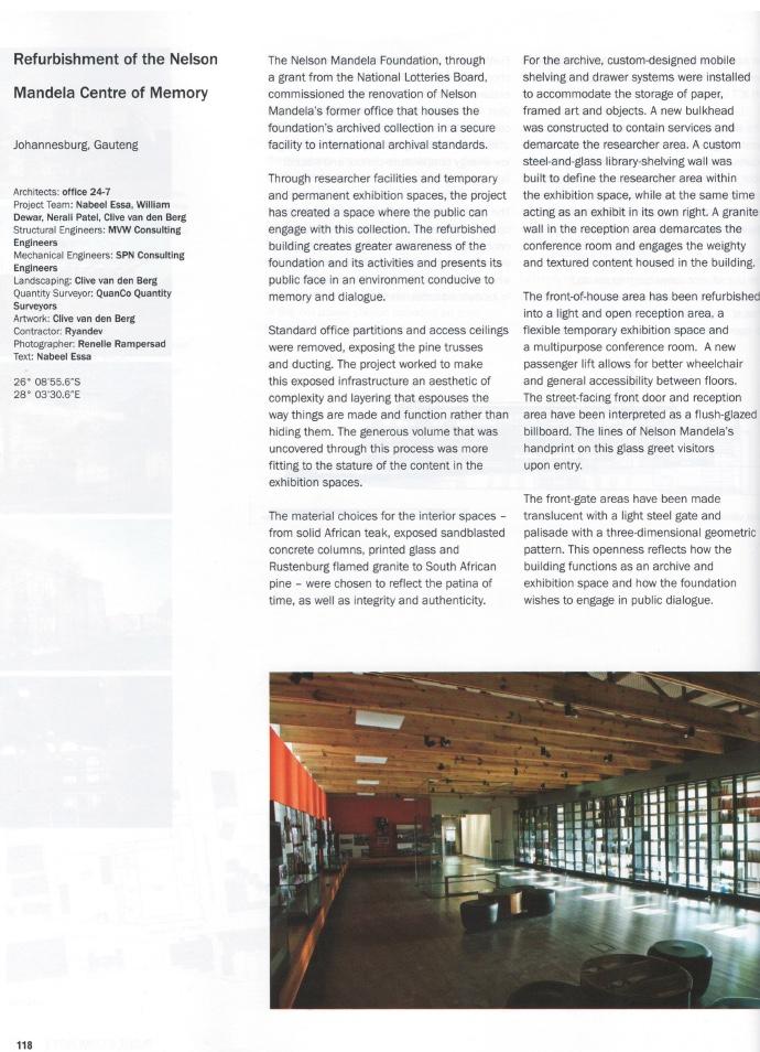 Key responsibilities: Full architectural service in collaboration with Clive van den Berg.