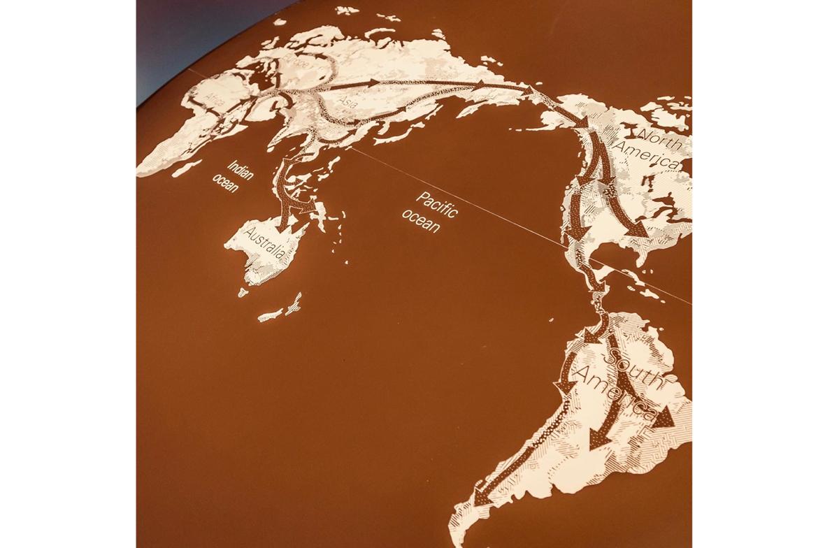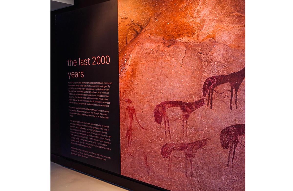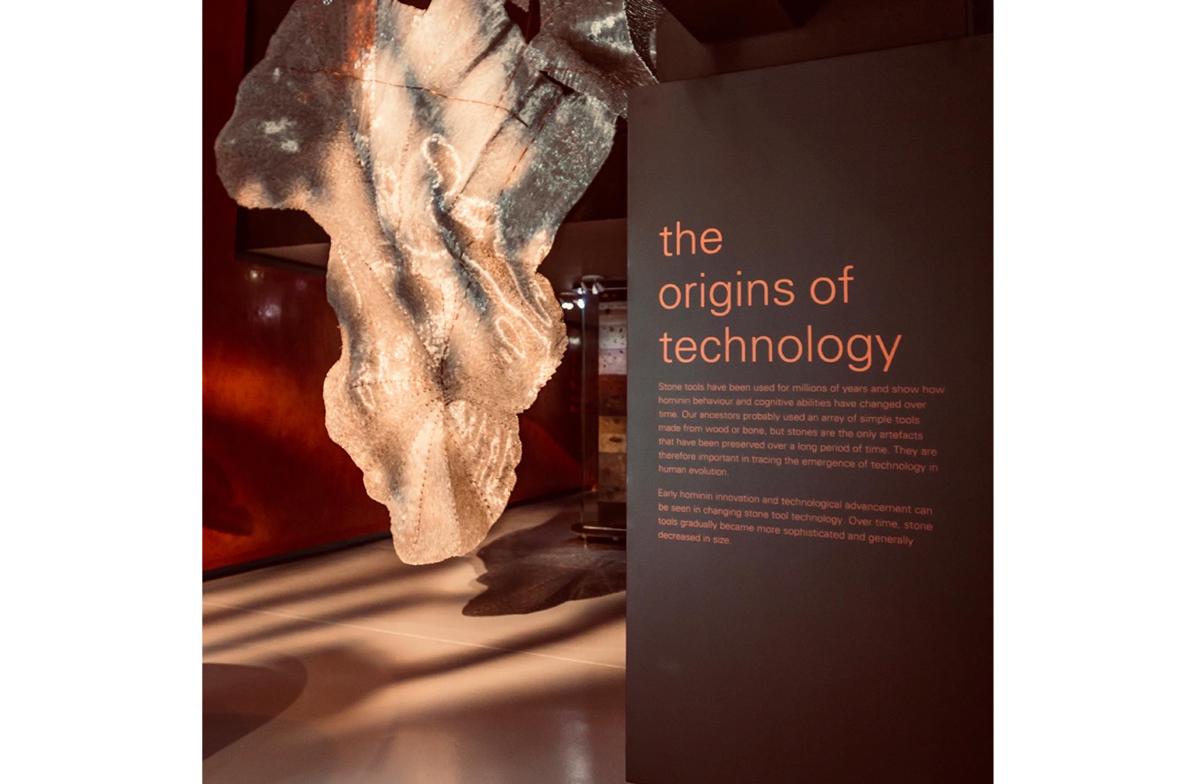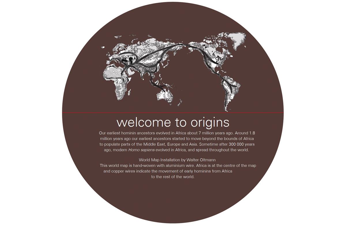 The exhibit contextualizes the Origins Centre Museum and looks at the Origins of our Hominin ancestors and technology and earliest forms of symbolic expression.