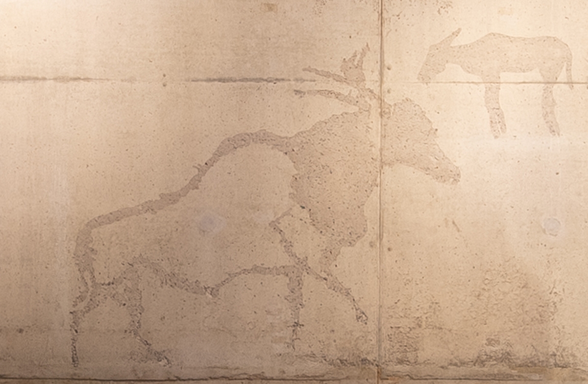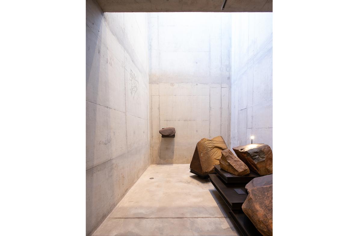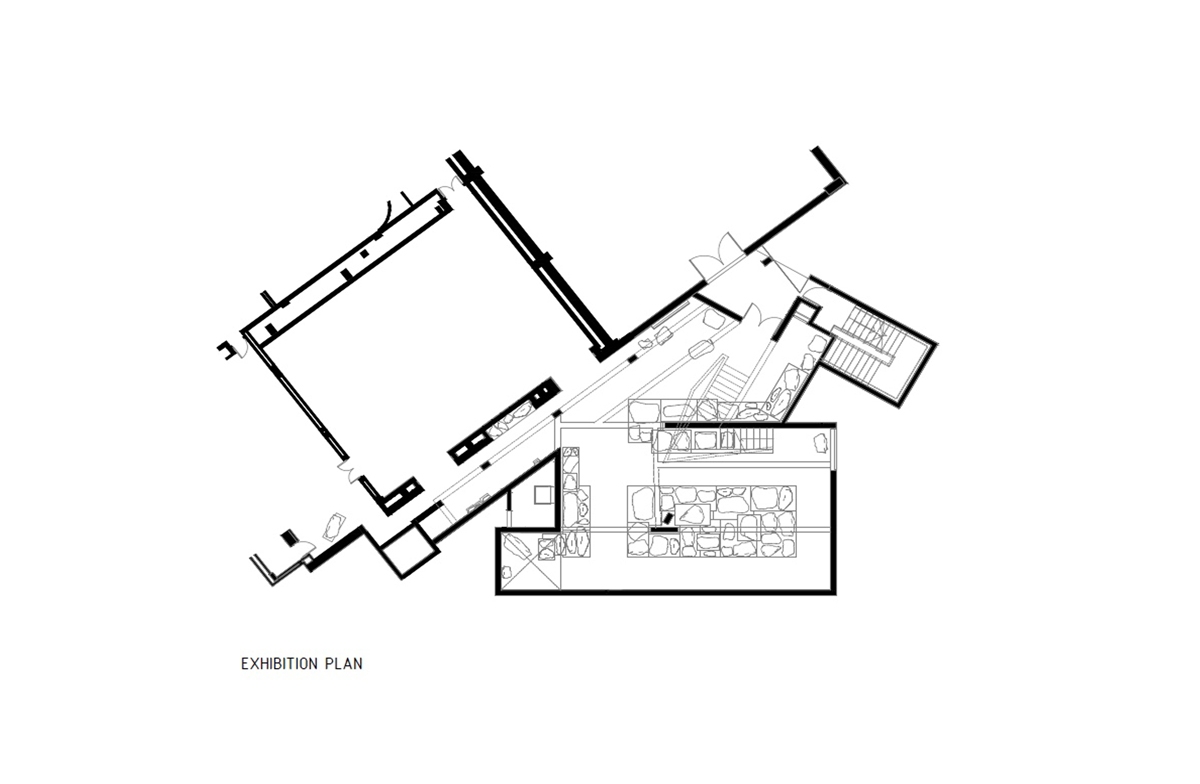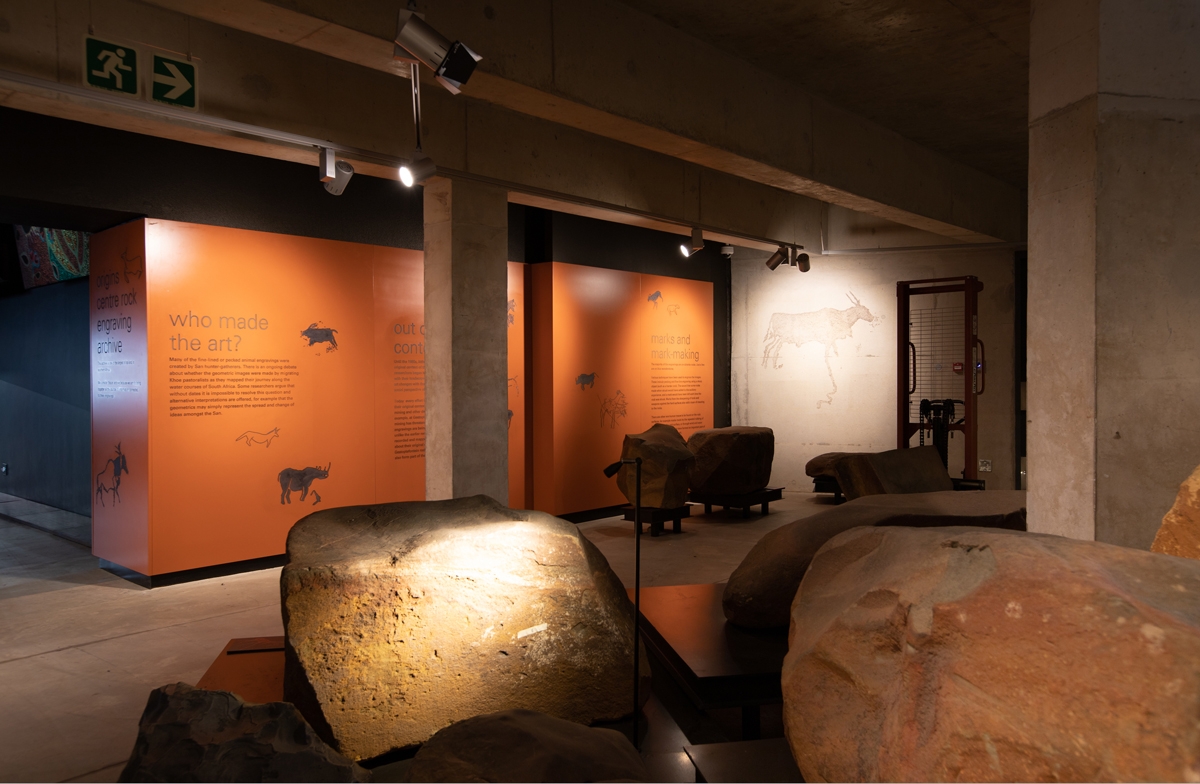 The exhibit offers the bulk of this important rock engraving collection as a resource for visitors to engage. The plinths are largely kept away from the concrete walls to create constructed ‘landscape’ islands. The rocks are organized with an archival sensibility onto floating steel platforms of varying heights and cantilever. Each rock has a label that displays the archival reference number and has a tracing of the engraving to allow visitors to identify the often feint images. The exhibit holds the collection as an open archive, allowing visitors and scholars to interpret the engravings beyond a fixed curated experience or anthropological narrative. The correlation of the artifact and the exhibit language helps to highlight the nuance and specificity of the collection.