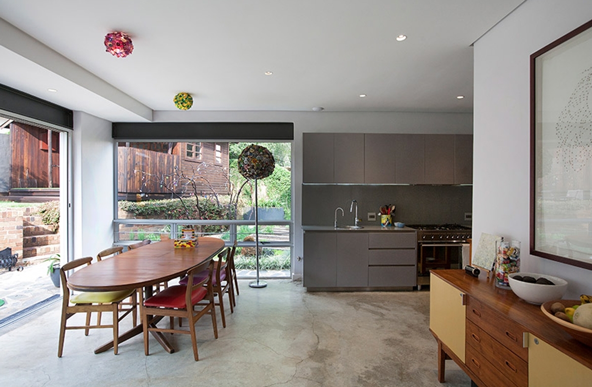 This renovation project explores ways of strategically carving a series of spaces that provide a spatial canvas for the artist client’s creative energy. The spaces become theatrical backdrops for a life of creative thinking. With the client’s interior insertions and furnishing installations, the spaces perform to revel and reel in a post-utopian suburbia.